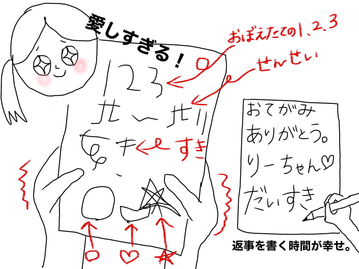 まるで暗号文のようなお手紙なのですが、よーくよーく見ると書きたいことがわかるので、毎回穴があくほどお手紙を見ては解読するのが密かな私の楽しみです。