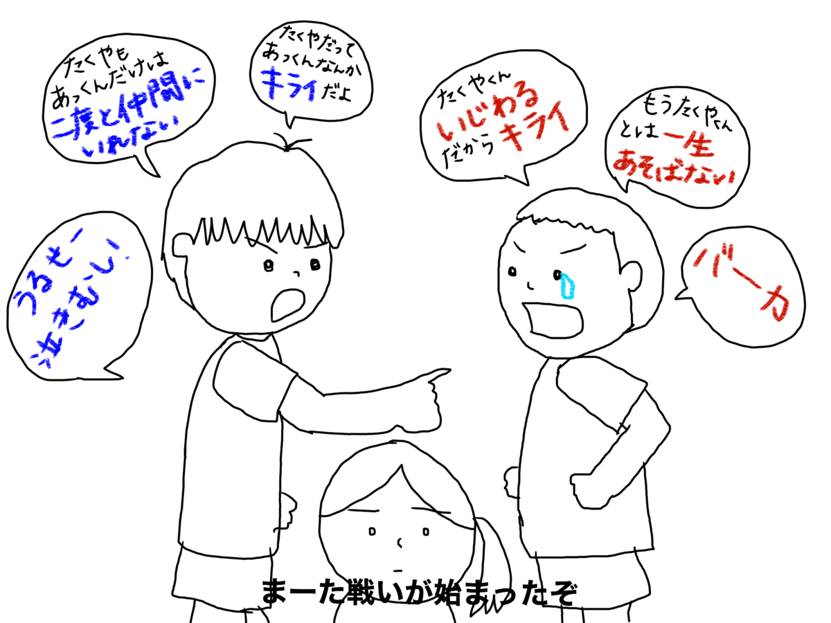 やんちゃなたくやくんとあっくん。毎日毎日すーぐにケンカをします。