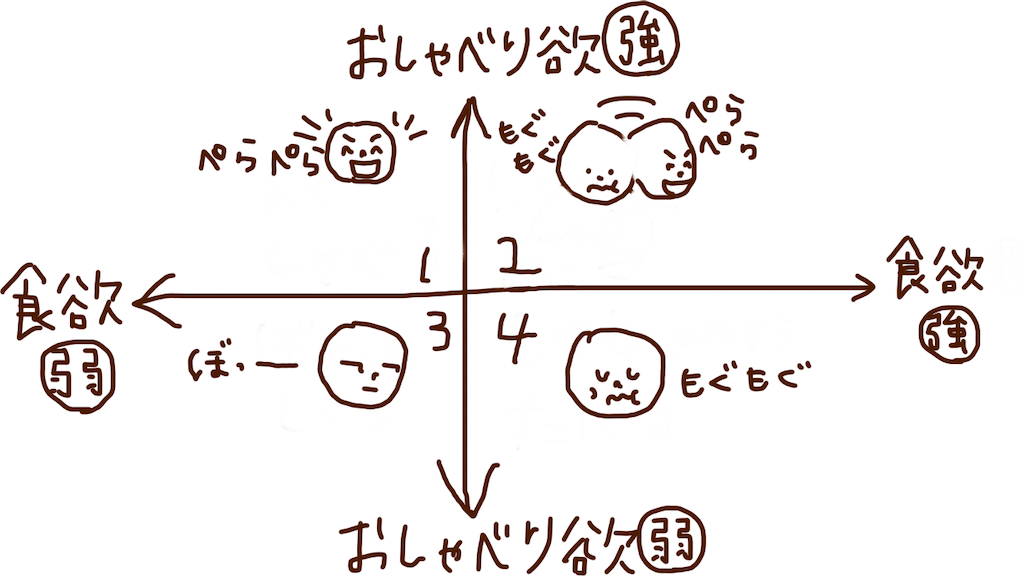 私が考えるおしゃべり欲と食欲の関係を簡単に図にするとこんな感じです。