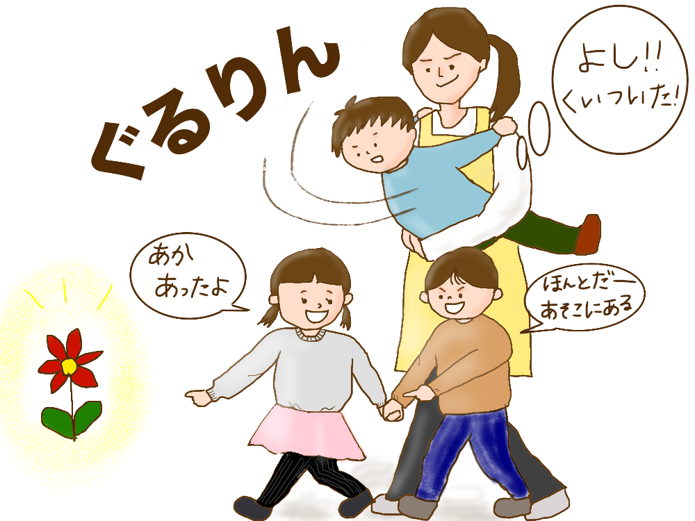 そして抱っこしたあと、子どもが自分から歩こうと思えるように声をかけていく。